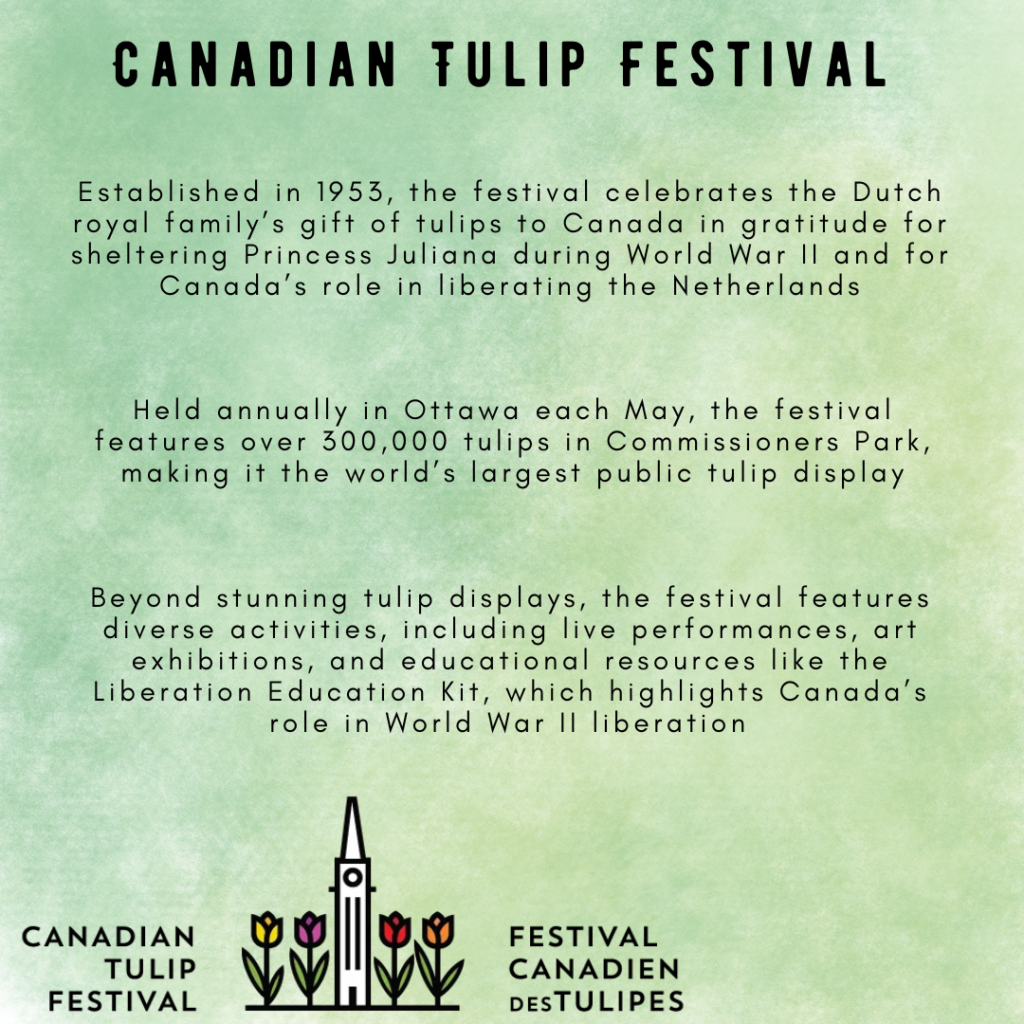 The Canadian Tulip Festival has identified 9 SDGS of the United Nations Sustainable Development Goals where it can make an impact. The festival has also completed an assessment with GreenStep Sustainable Tourism and earned Sustainable Tourism Silver Certification.